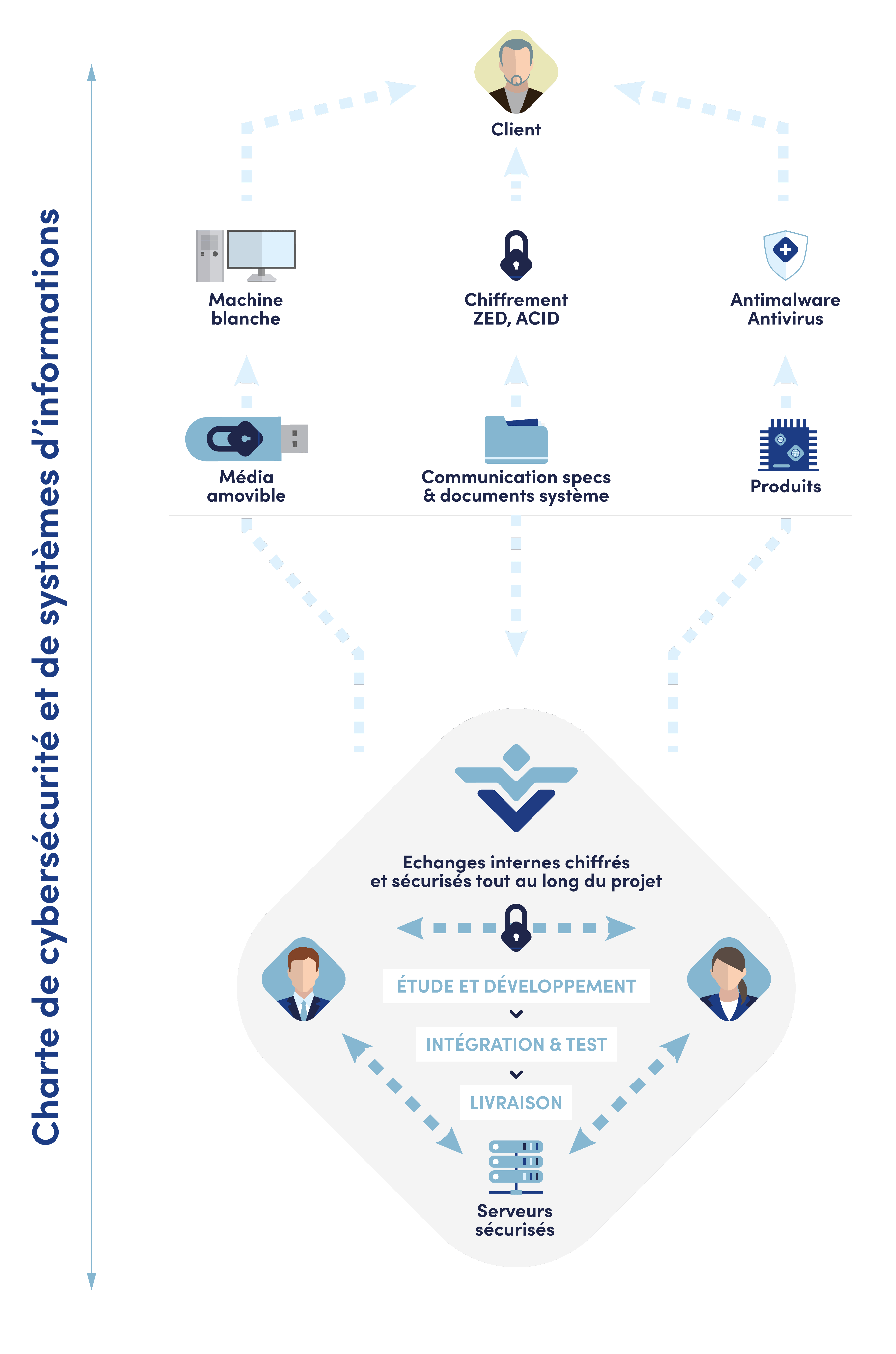Dans ce contexte, GACI met en place des processus interviennant à plusieurs niveaux, à la fois sur notre infrastructure informatique, sur les produits livrables par l'intégration de modules de chiffrement entre chaque étape de calcul, sur le passage en machine blanche des supports amovibles avant utilisation et sur l'utilisation de conteneurs chiffrés pour l'échange d'informations.